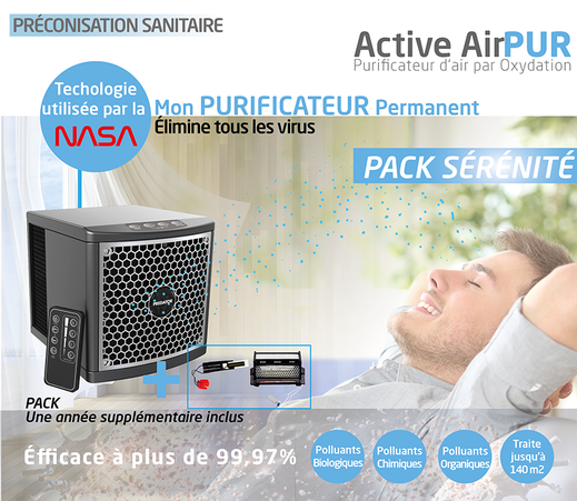 Ce petit cube de 16 centimètres combat en silence les virus, les bactéries et autres particules nocives. Il élimine nos ennemis invisibles dans l’air, sur les sols et les surfaces. Il a le pouvoir de générer un puissant désinfectant naturel capable de traiter intégralement une pièce jusqu'à 140 m2. Conforme au décret ERP-2015 - Qualité de l'air