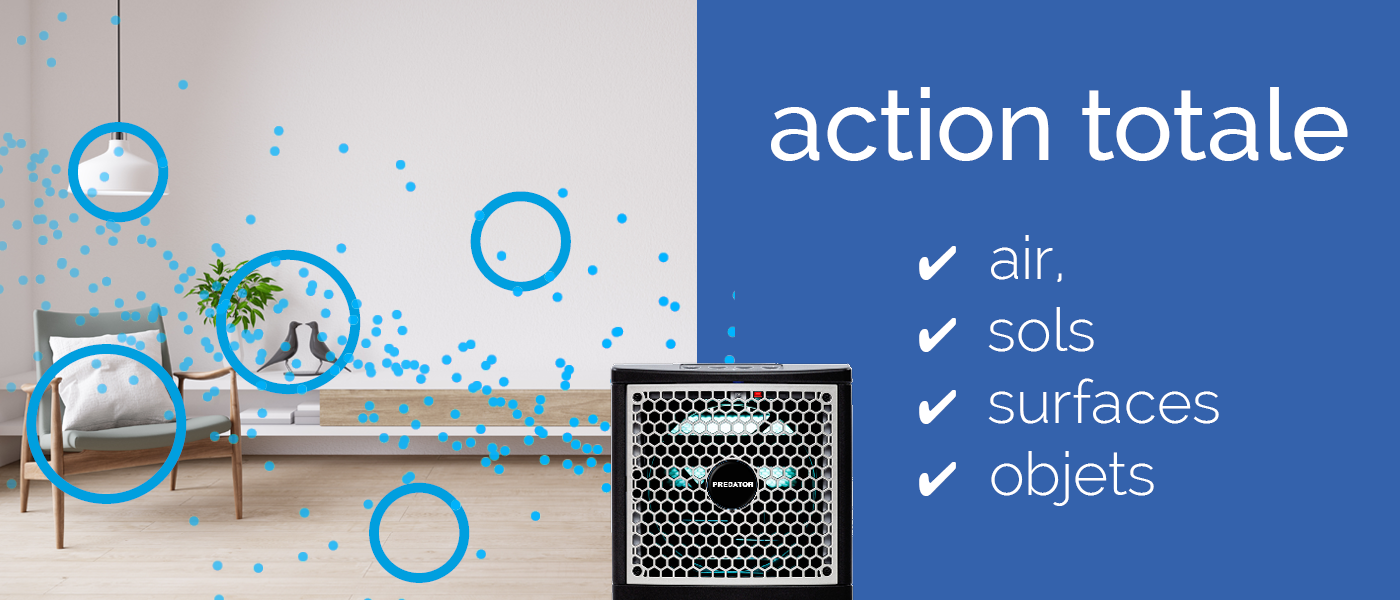 • Agit dans l'air, sur les sols, les objets et les surfaces